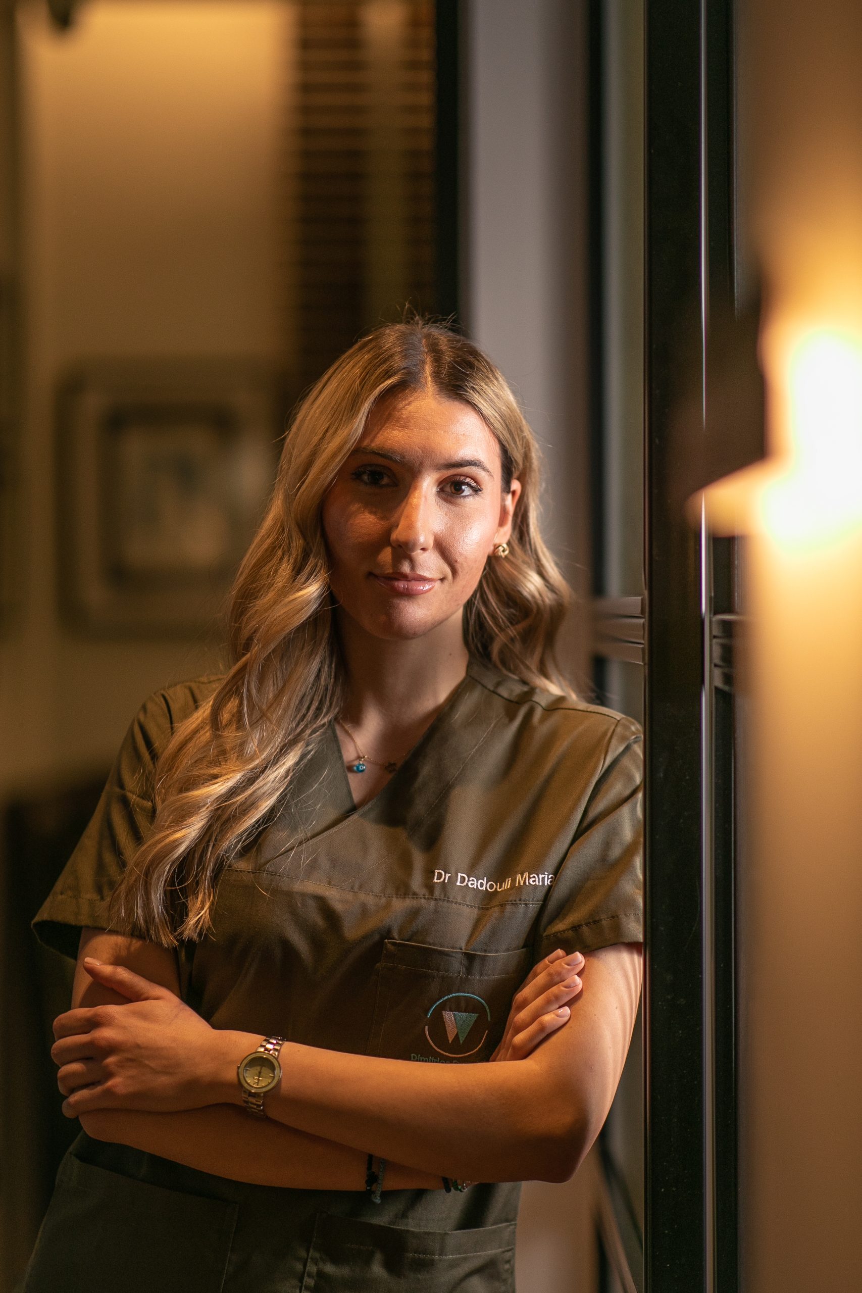 Η Μαρία Δαδούλη αποφοίτησε από την Οδοντιατρική Σχολή του Ιατρικού Πανεπιστημίου της Σόφιας. Κατά τη διάρκεια των σπουδών της εργάστηκε ως βοηθός στο οδοντιατρείο δημόσιας δομής και, εν συνεχεία, έπειτα από την αποφοίτησή της, ως βοηθός στο ιατρείο του κ. Έξαρχου. Έχει ολοκληρώσει masterclass στο CBCT και παρακολουθεί πληθώρα σεμιναρίων για συνεχή επιμόρφωση. Σήμερα εργάζεται ως γενικός οδοντίατρος με ενδιαφέρον στη χειρουργική αλλά και στην ορθοδοντική κατεύθυνση.